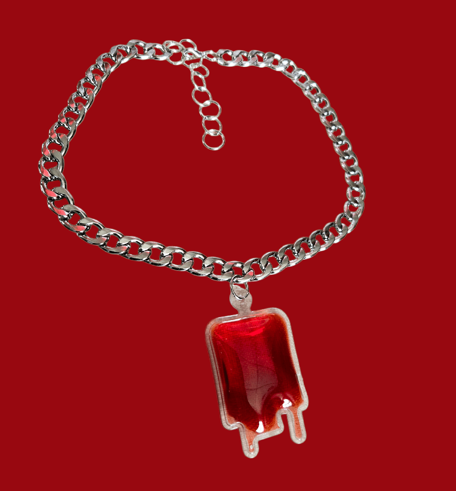 Blood Bag Pendant on a thick hypoallergenic Stainless Steel Choker Chain! Fully adjustable